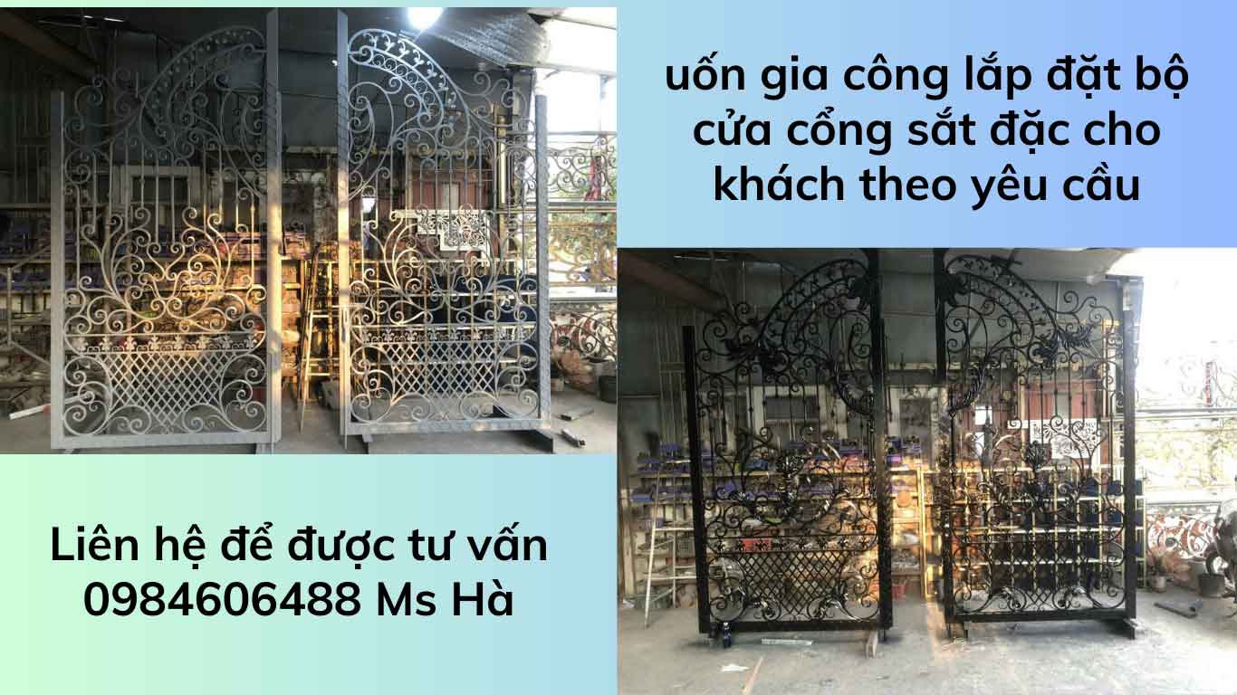 2. Cổng Sắt Mỹ Thuật Sắt Đặc Uốn Hoa Văn