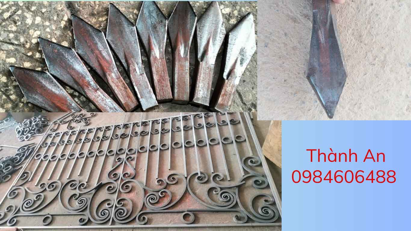 Chông sắt đặc dập mũi mác + hoa văn sắt mỹ thuật