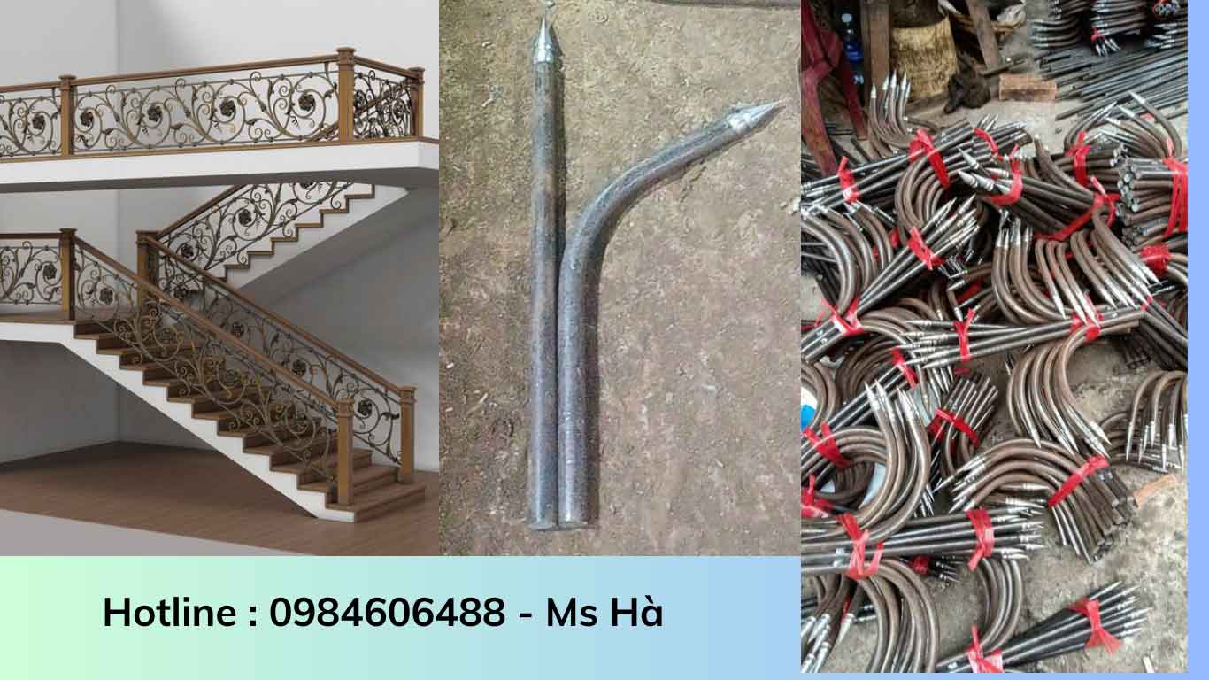 Con tiện cầu thang + hoa văn sắt uốn